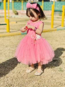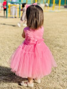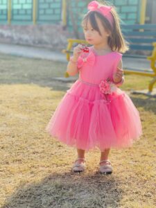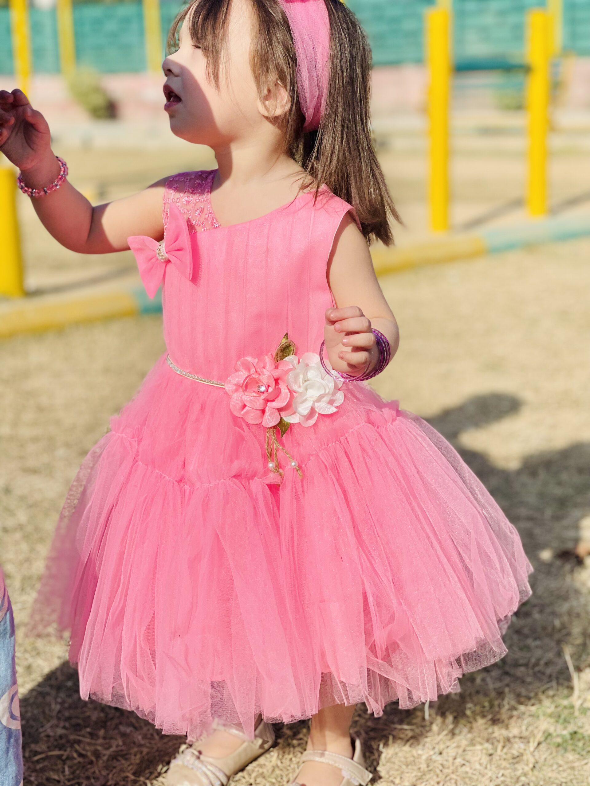 Pink tulle, a delicate sparkle belt, and a fluffy fairytale look your little doll will absolutely adore.