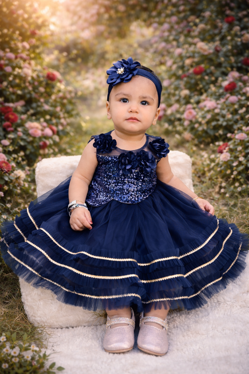 Royal Blue layers, beautifully crafted floral accents, and a sparkling bodice that makes every little princess glow.Β